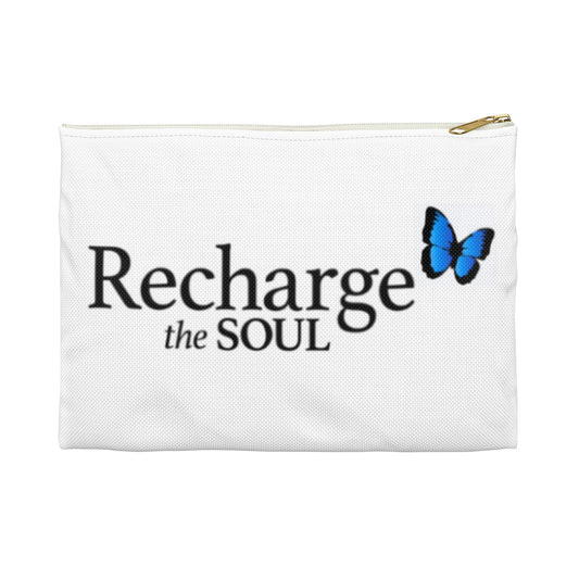 Accessory Pouch — "Recharge the Soul" Inspirational Zipper Pouch with Blue Butterfly