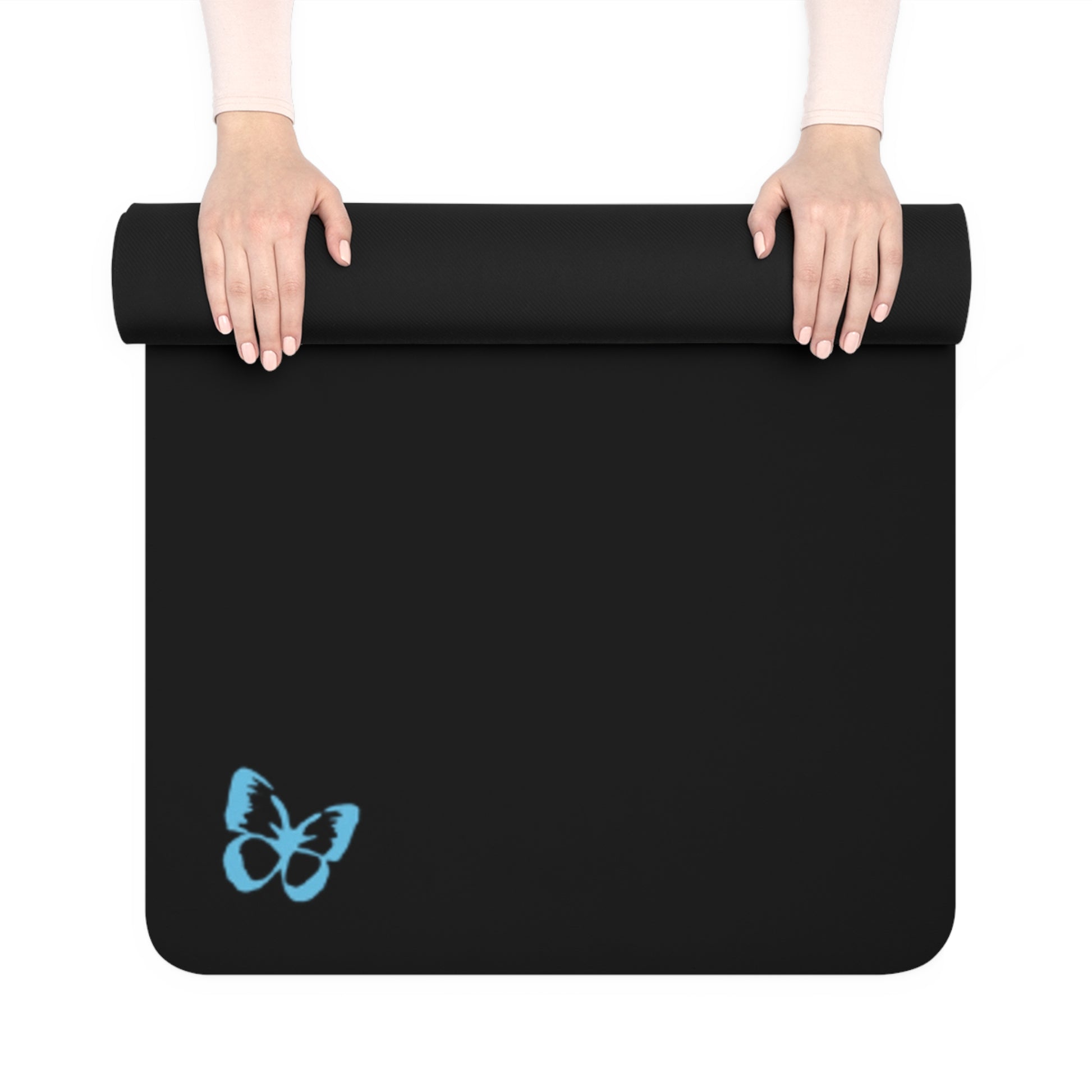 This slim, travel-ready yoga mat brings quiet focus to every practice. With a microfiber suede top and natural rubber bottom, it grips the floor and your hands without feeling bulky. The soft, black surface and subtle blue butterfly accents create a calm, unobtrusive backdrop for breath work, gentle flows, or meditative moments. Lightweight and just 3mm thick, it rolls up neatly into the included black polyester strap for easy transport to studios, parks, or a quiet corner at home. Keep it out of direct sunlight to preserve the deep, even color that supports steady, grounded sessions.